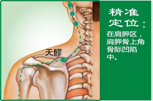 第1步:正坐或俯卧位。第2步:在后背可摸到一三角形骨头(肩胛骨);第3步:在其内上角,按压有酸痛感处,即为本穴。