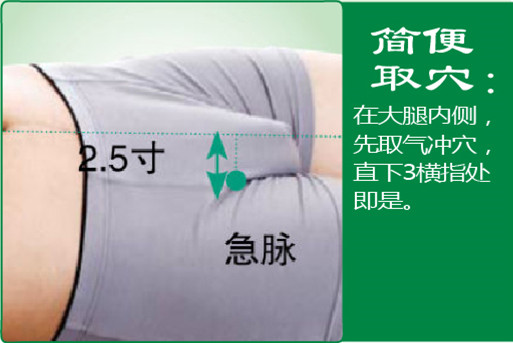 在耻骨结节的外侧,当气冲穴外下方,腹股沟股动脉搏动处,前正中线旁开2.5寸。