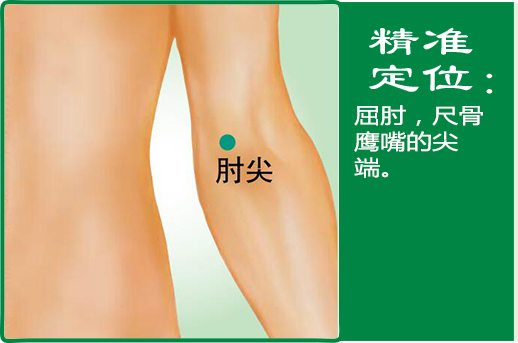第1步:屈肘;第2步:肘部最凸点,即为本穴。